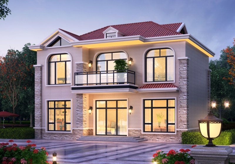 • 帶車庫帶露臺二層農村小別墅設計圖,宅基地大小適中,外觀造型美