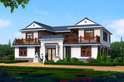 新中式二層別墅設計圖,現代中式別墅外觀效果圖