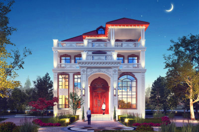 120平米農(nóng)村40萬三層別墅自建房款式,簡歐風格