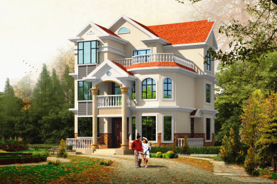 歐式小型二層別墅效果圖片,帶全套Cad別墅設(shè)計圖紙