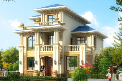 新農村三層豪華歐式別墅,復式高端自建房設計圖紙及效果圖