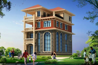 古典韻味的四層房屋設計圖,占地140平米左右,這樣的外觀配上紅