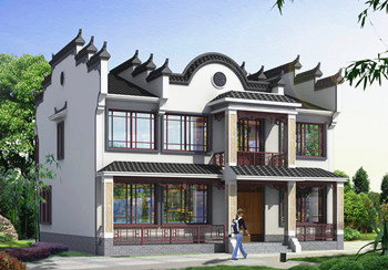 新中式三層雙拼別墅設計圖,外觀圖片美觀、大氣