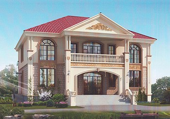 面寬15米左右二層簡歐房子設計方案圖,外觀對稱設計,廚房在前